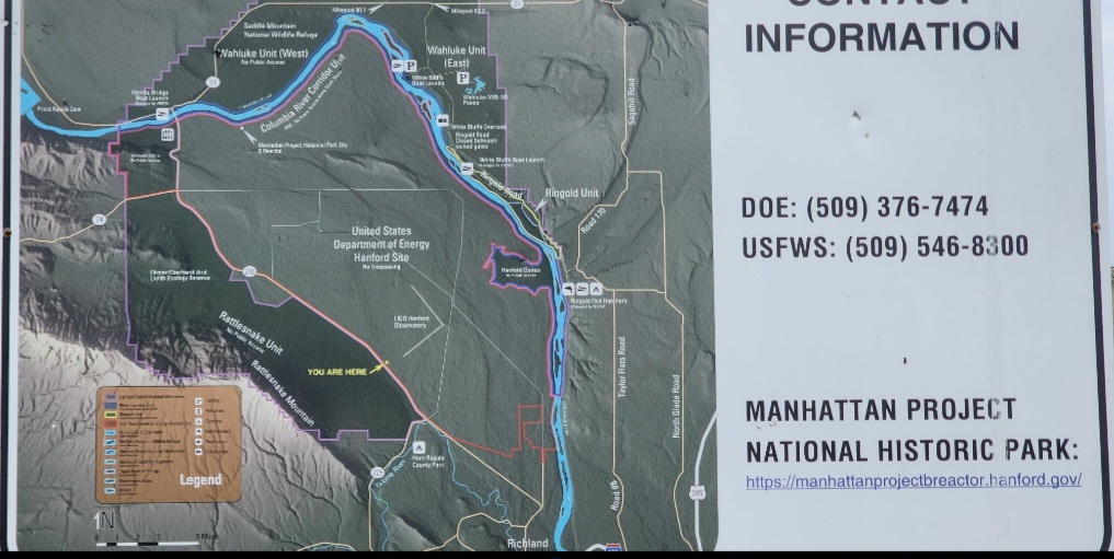 After we crossed the Columbia, and drove for a bit, started noticing a fence line that wasn’t ending with signs about no trespassing, warnings, and information. It looked like just fenced in sand, no livestock, no crops, just dirt roads on the perimeter. We, being the curious sort, decided to stop and see what it was all about.