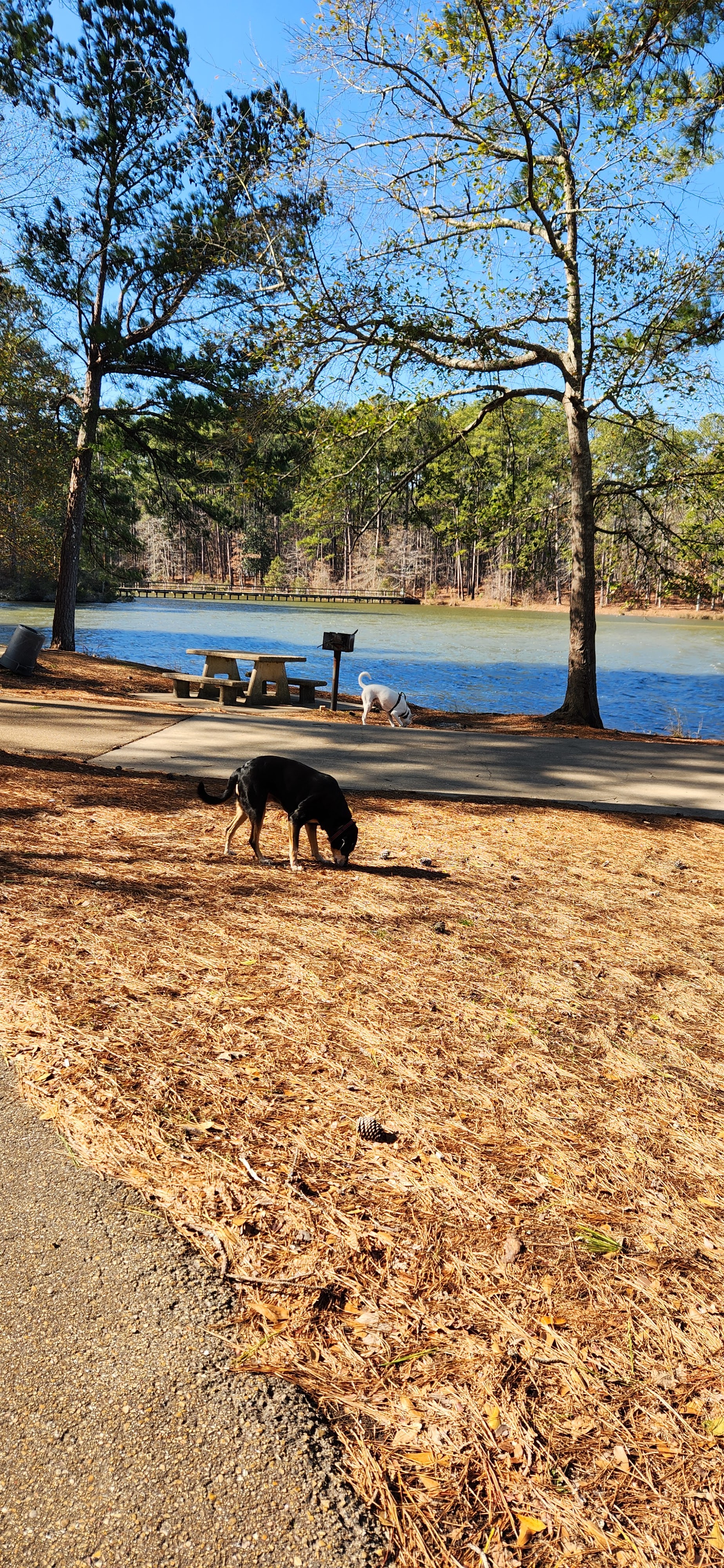 Our next home for a few days was Lake Lincoln State Park in Mississippi. This is another beautiful state park a little south of Jackson, Mississippi. The ranger was so warm and welcoming! She even gave us a huge sample of coffee that is packaged especially for the Mississippi State Parks. This is another place I would love to revisit when it is a bit warmer. One of the bonuses of camping in the winter (except in Florida) is that the campgrounds are almost completely empty. I think there was one, maybe two other campers the whole time we were there. The dogs were able to wander and explore off the leash. They both really enjoy that!