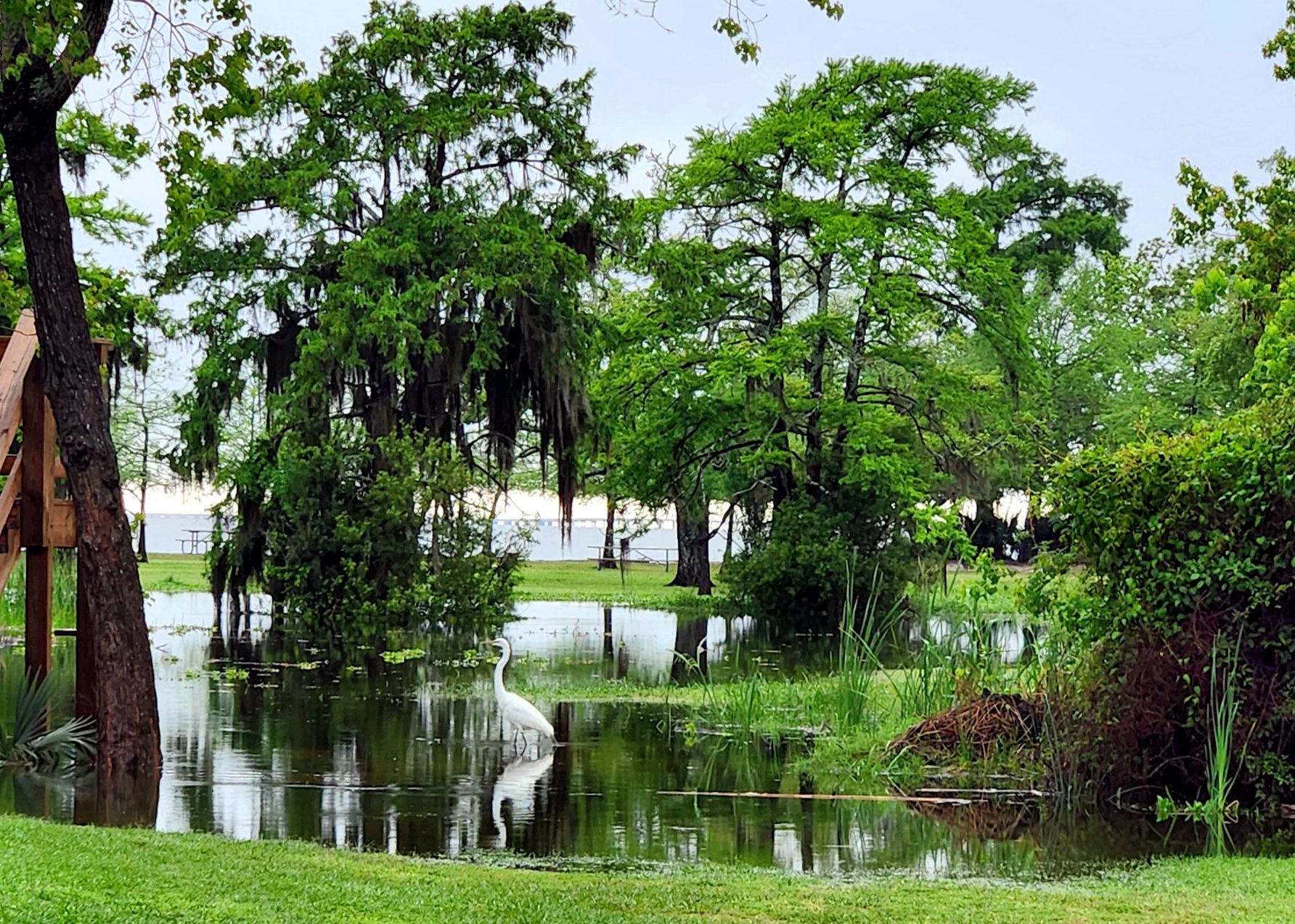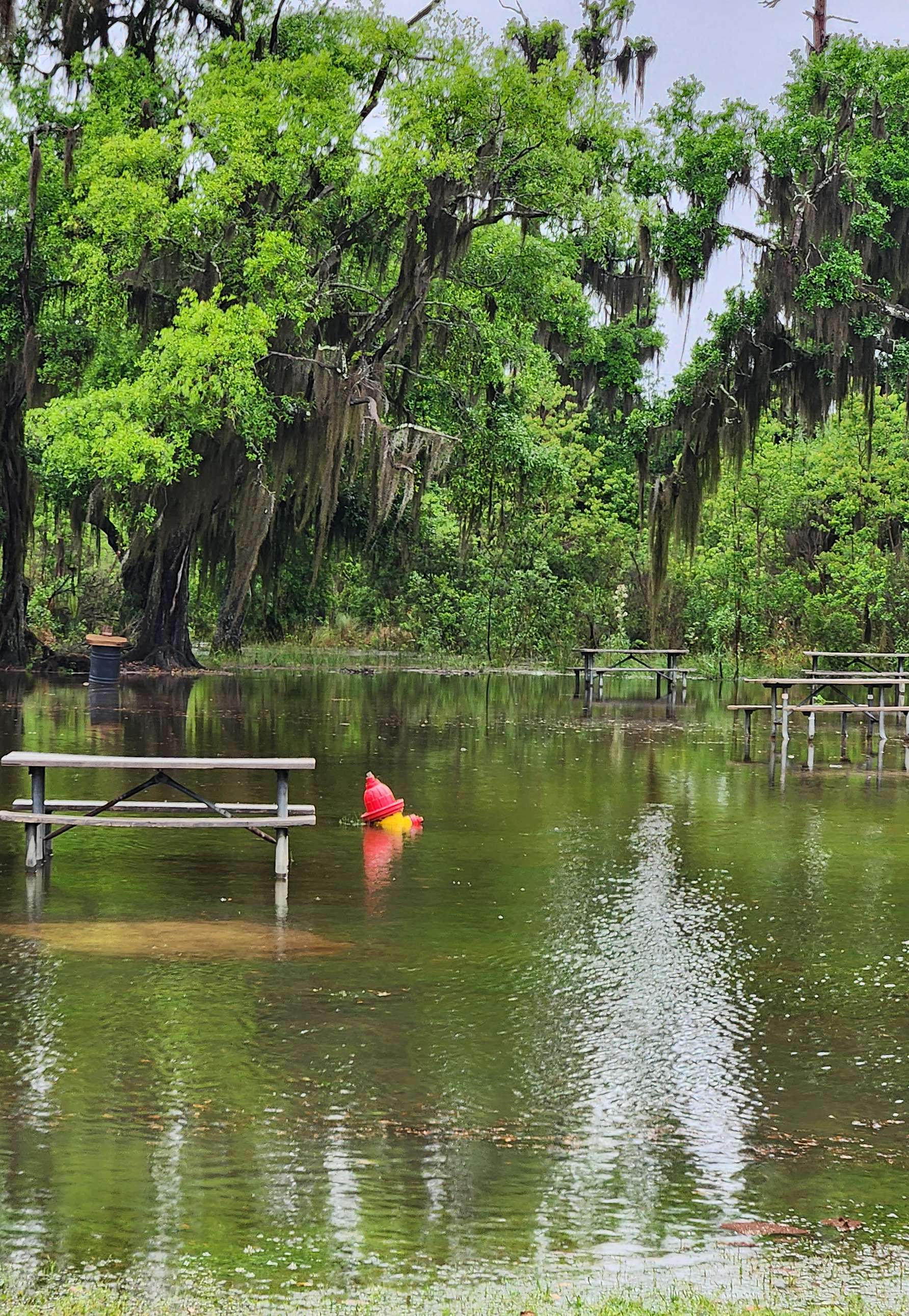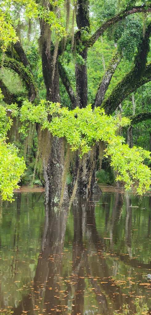 In between family time, we settled into beautiful Fontainebleau State Park. The weather got a bit squally on us during the week and sent tons of rain and a tornado about 20 miles to the east of us. This left the park slightly flooded, but no real damage, and some cool photo opportunities. I only used my phone for photos because trying to take pictures with a real camera and have Murphy on a leash is not easy. Of course, there were deer and some beautiful picture opportunities.