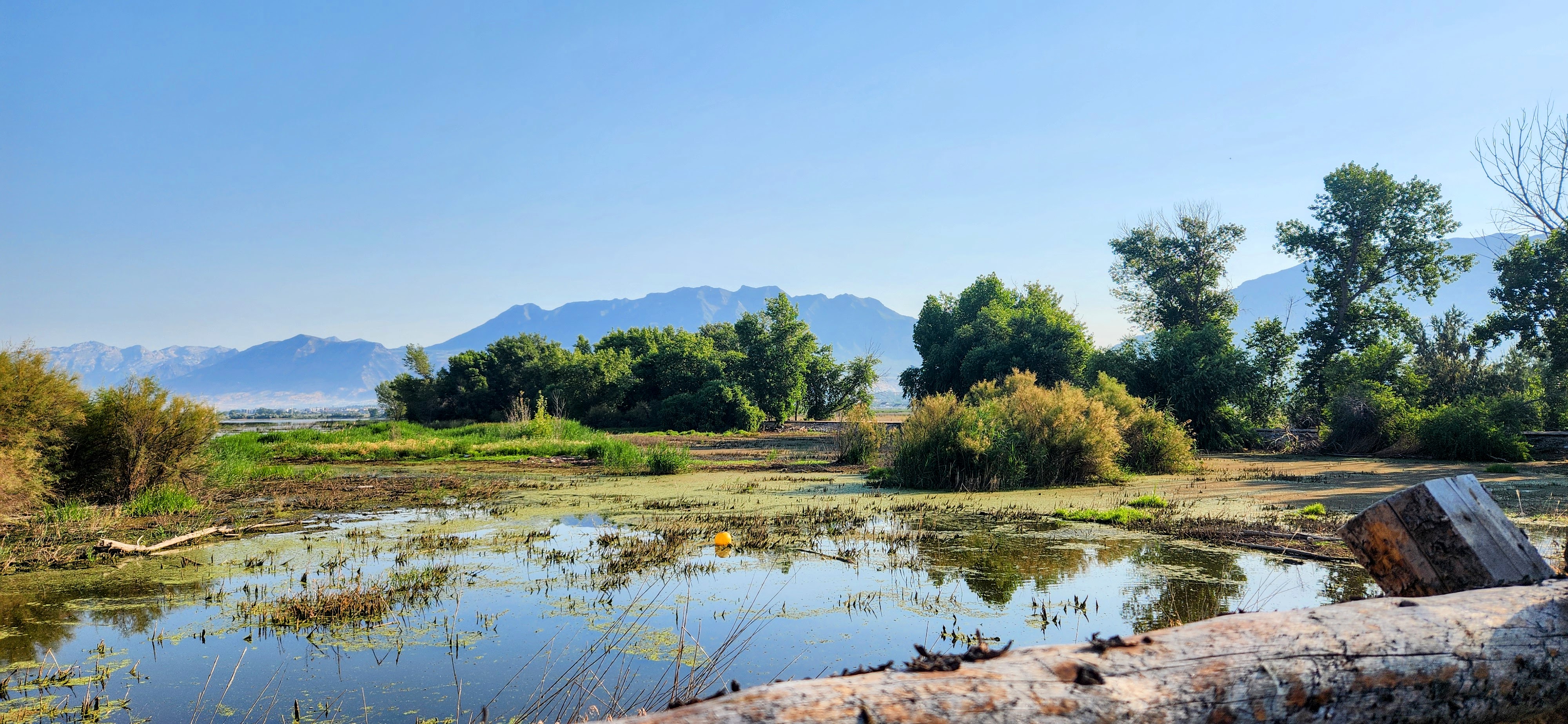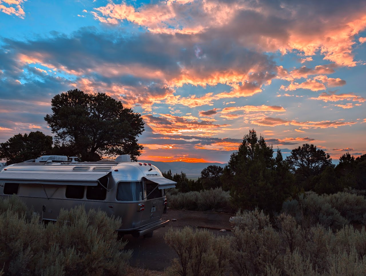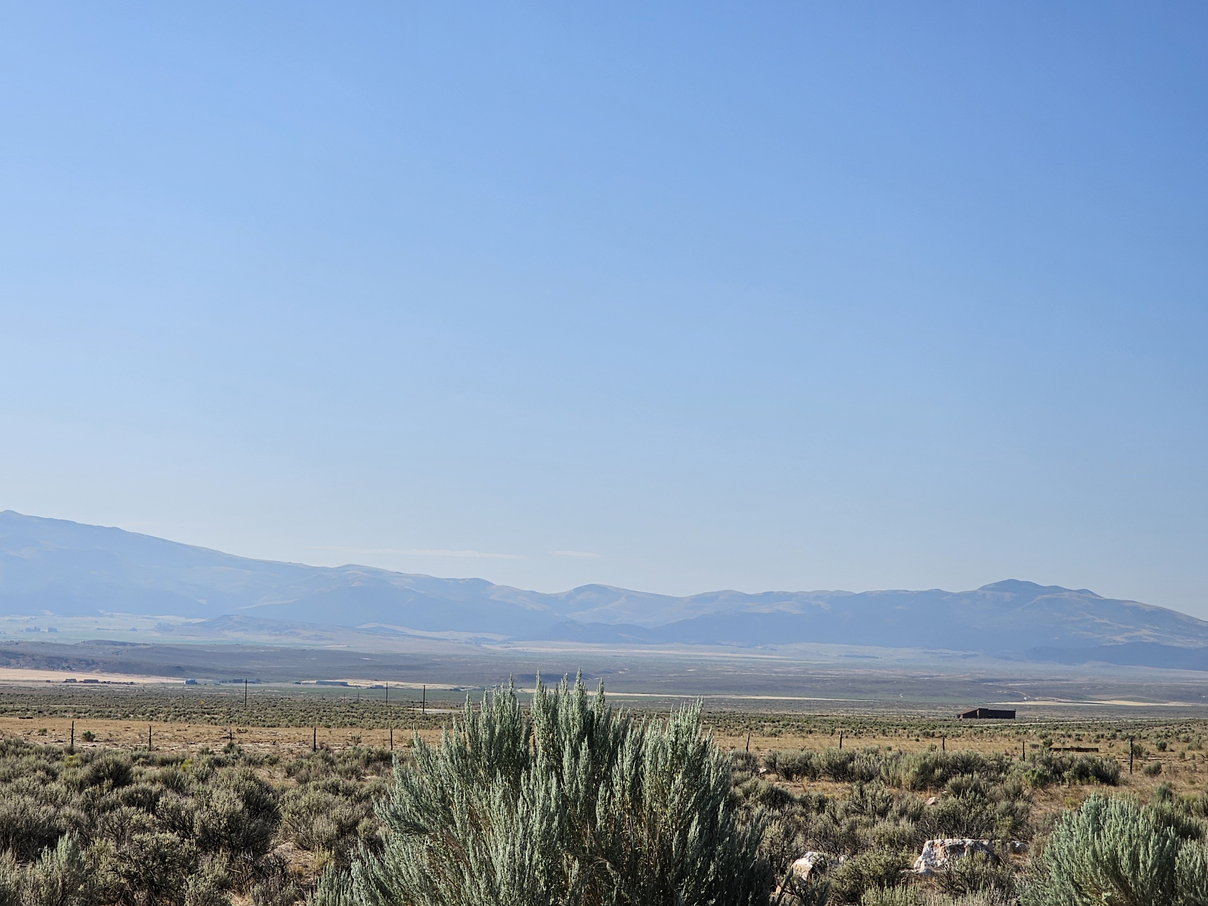 Unfortunately, we arrived during peak wildfire season. There were fires in California, Utah, Idaho, and other states. The views were very hazy, and sometimes, we could not see anything but smoke in the distance. We knew there were mountains around, but we just were not able to see them very well. This picture was of one of the clearer days.