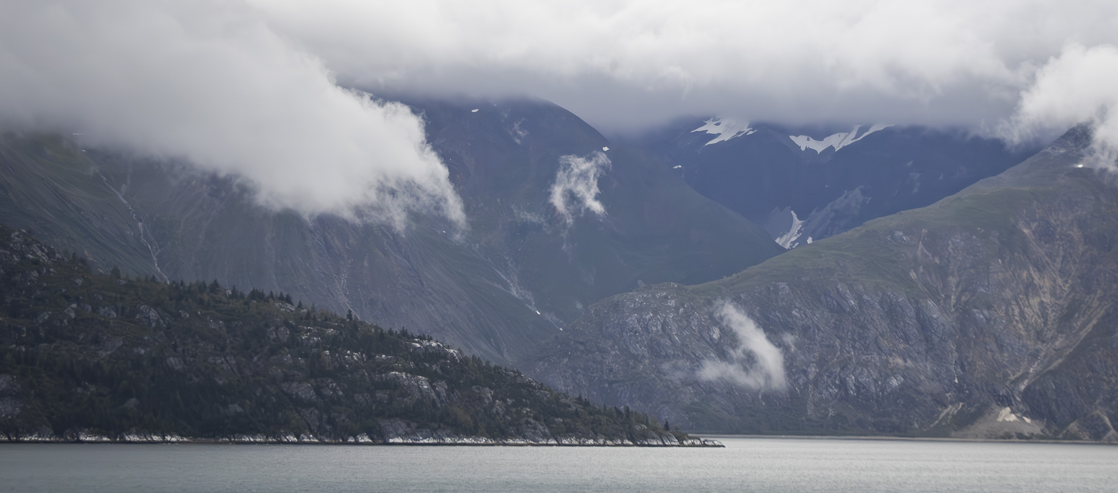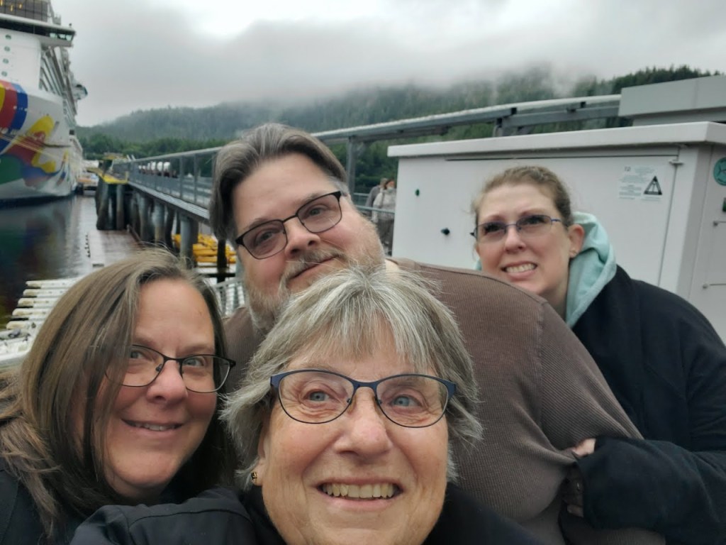 Ketchikan, Alaska. Between Glacier Bay and Alaska, our port was Ketchikan. Cruising in and out of this city was beautiful. As was the way this trip, the skies were cloudy and a bit foggy, and there was a light rain for some of the time. None of those things diminished the beauty.