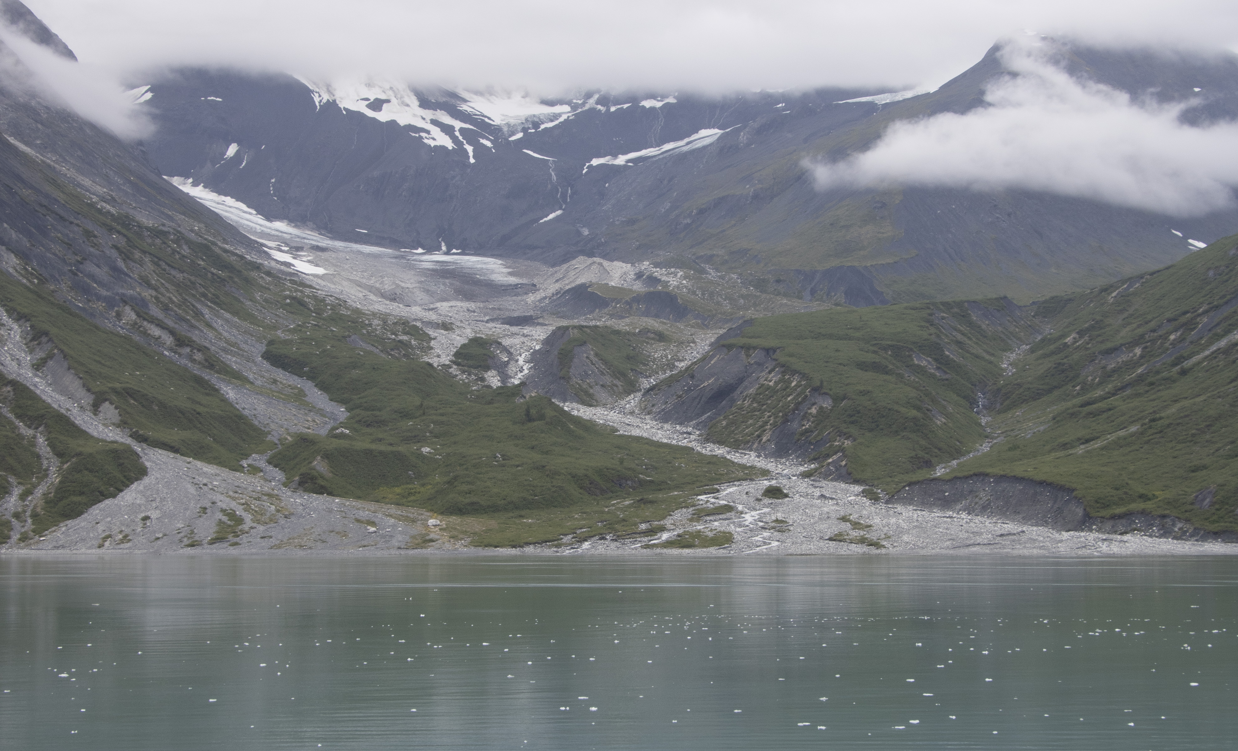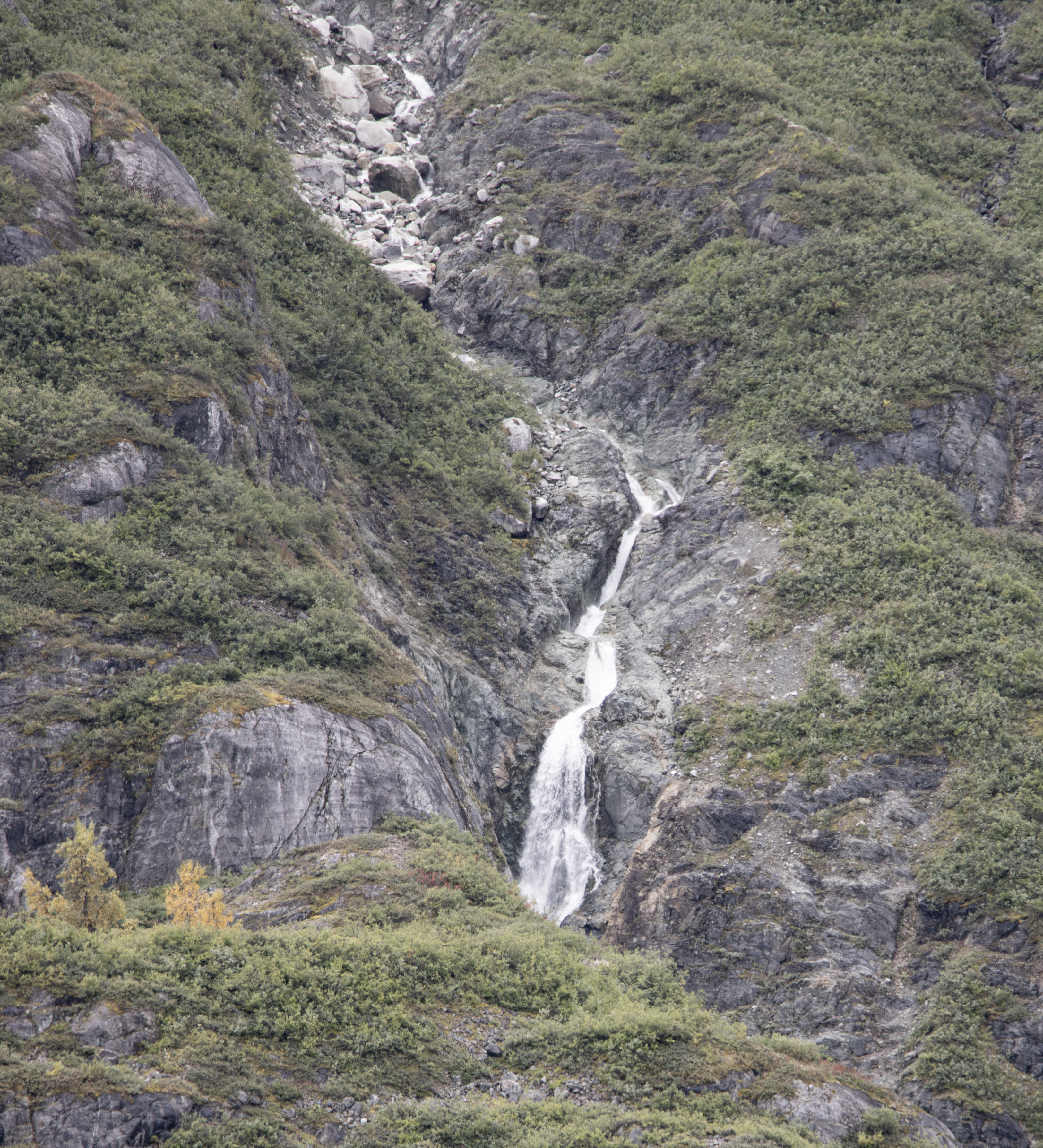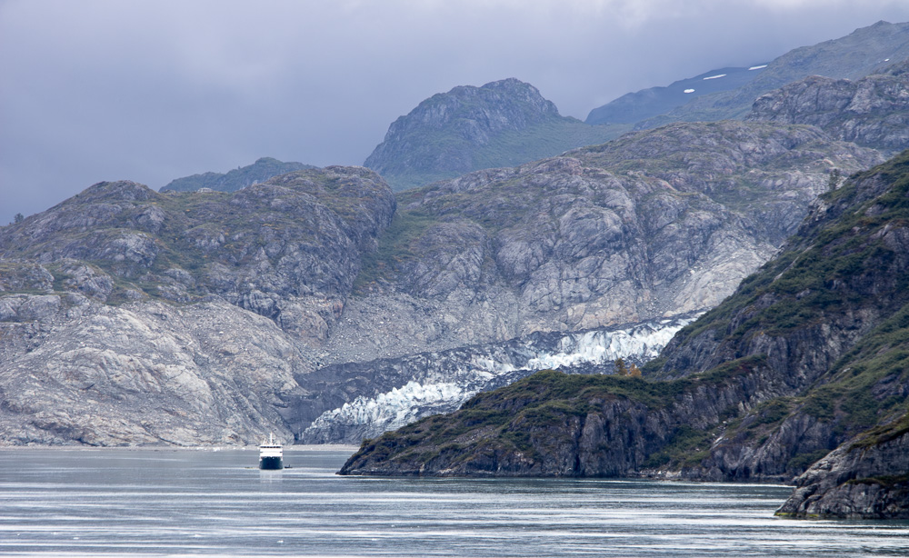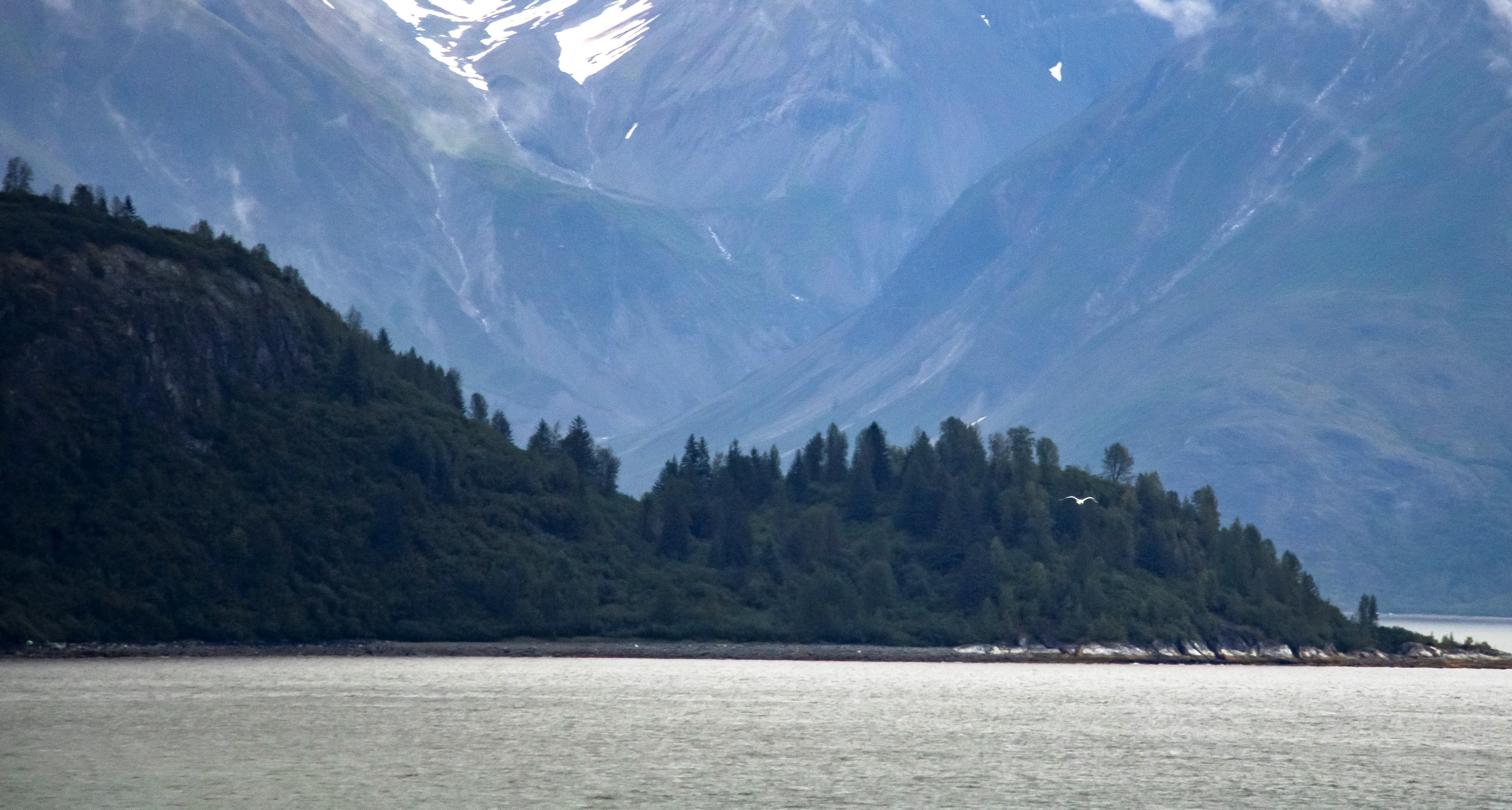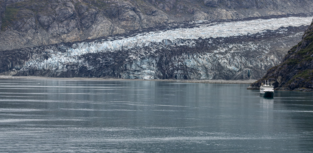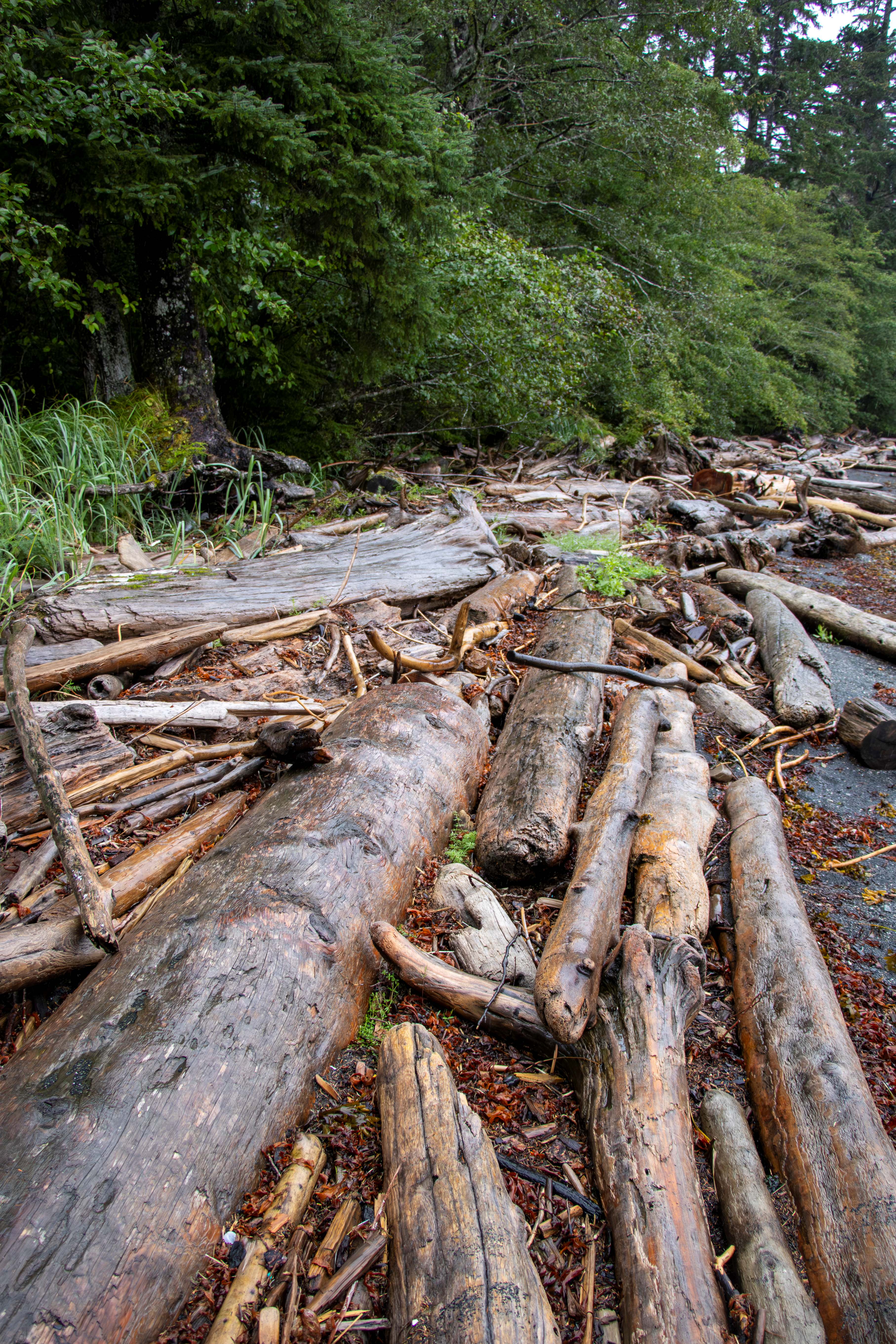 The cove we landed on had a black beach and then a forest. There was a nice trail leading a little way into the rain forest, but I took too long on the beach and only had about 5 minutes to walk on the trail. On the beach, there were bald eagle feathers. Fortunately, our guide warned us that it is illegal to collect eagle feathers. Each feather could be a fine of up to $5,000 and up to a year in jail. We really enjoyed the beauty of the cove.