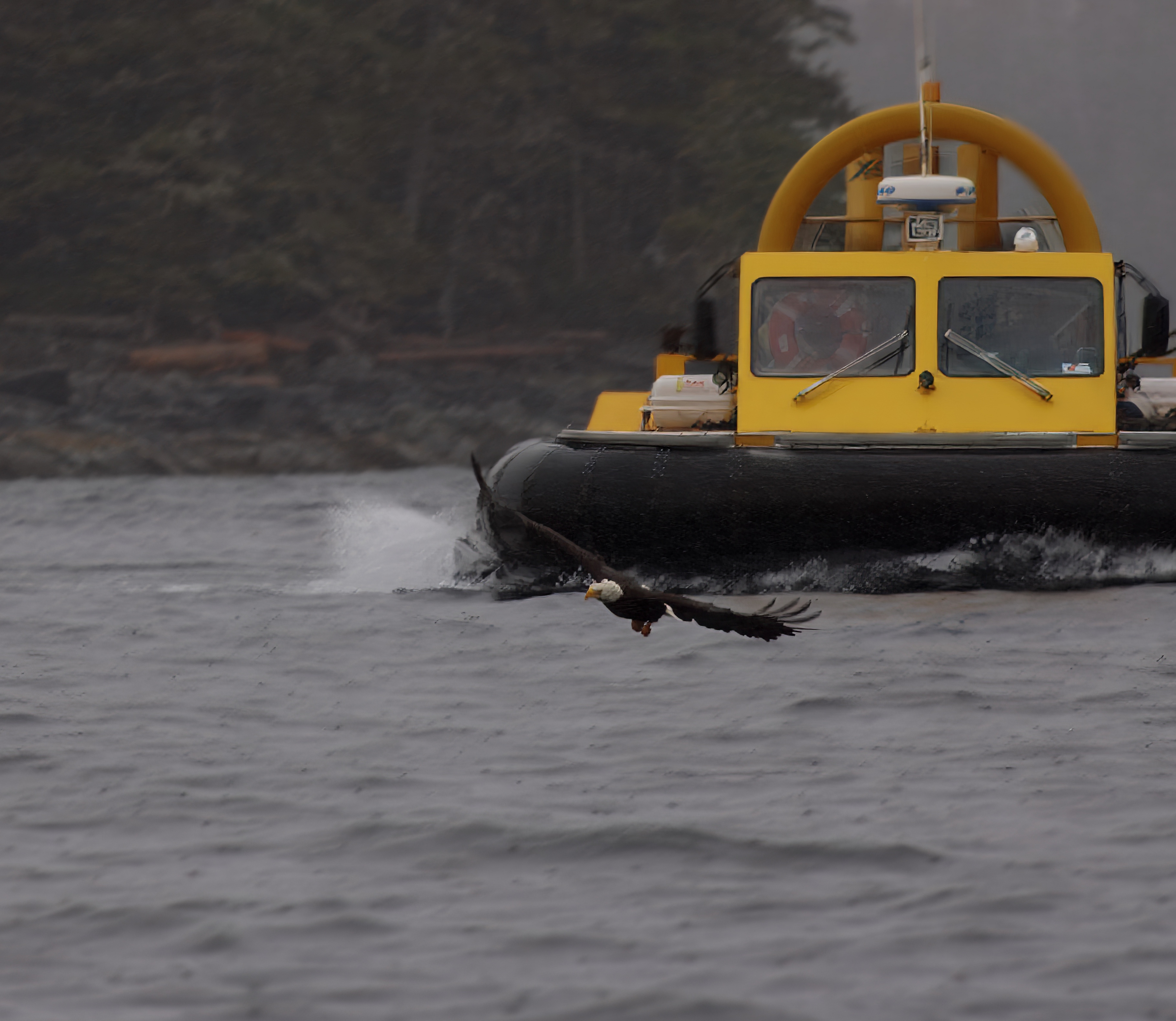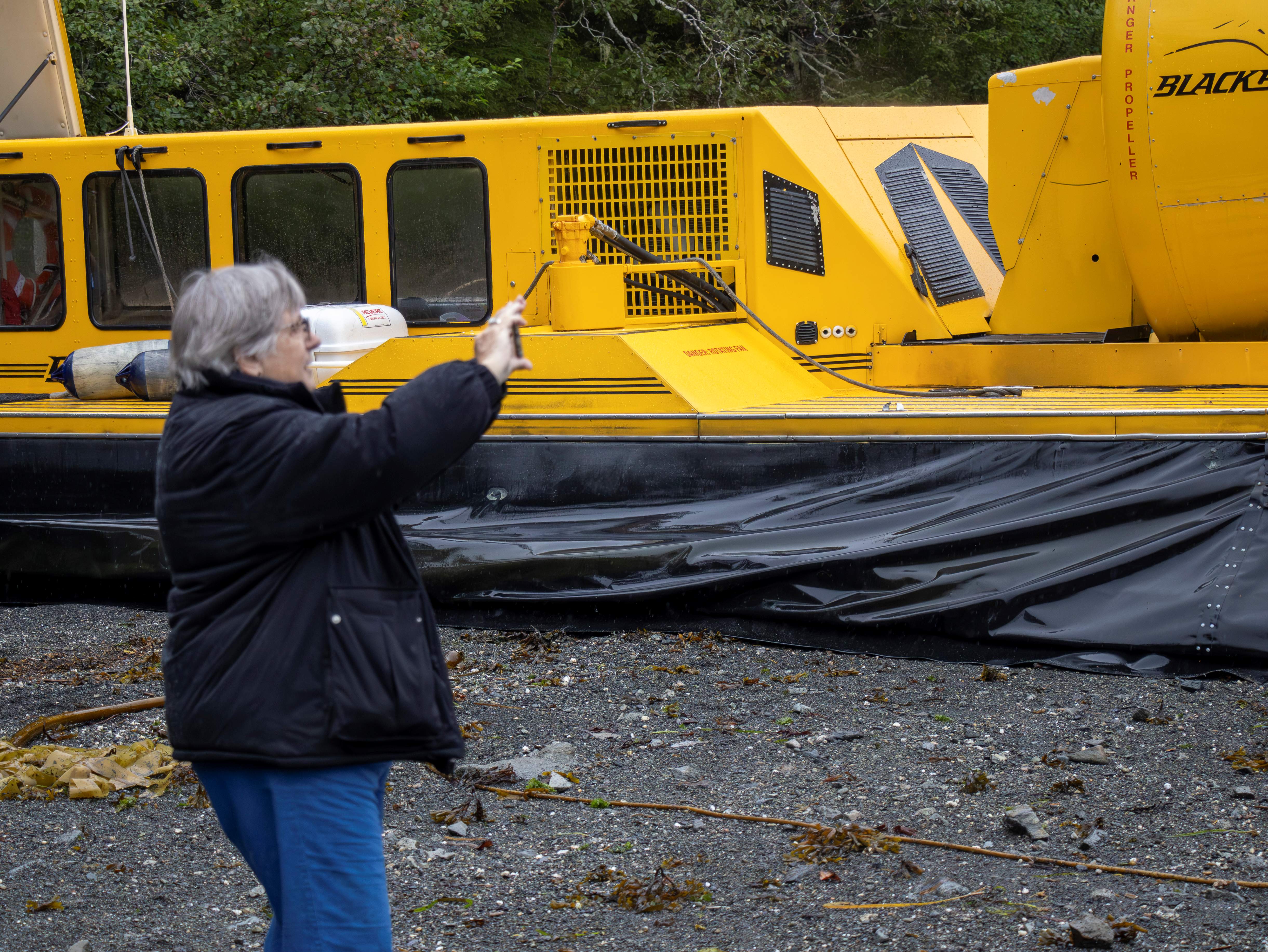 Our last excursion in Alaska was on a hovercraft. It was so exciting to hover over the water, moving at a pretty high speed. We had an excellent tour guide and an excellent captain. The captain gave us a thrilling and safe ride to a small black sand beach alcove. Along the way, we saw eagles and their nests and learned about the marine life and wildlife in the area. We also learned about the industries in Ketchikan. The main industries there are fishing and processing of the fish, and tourism.