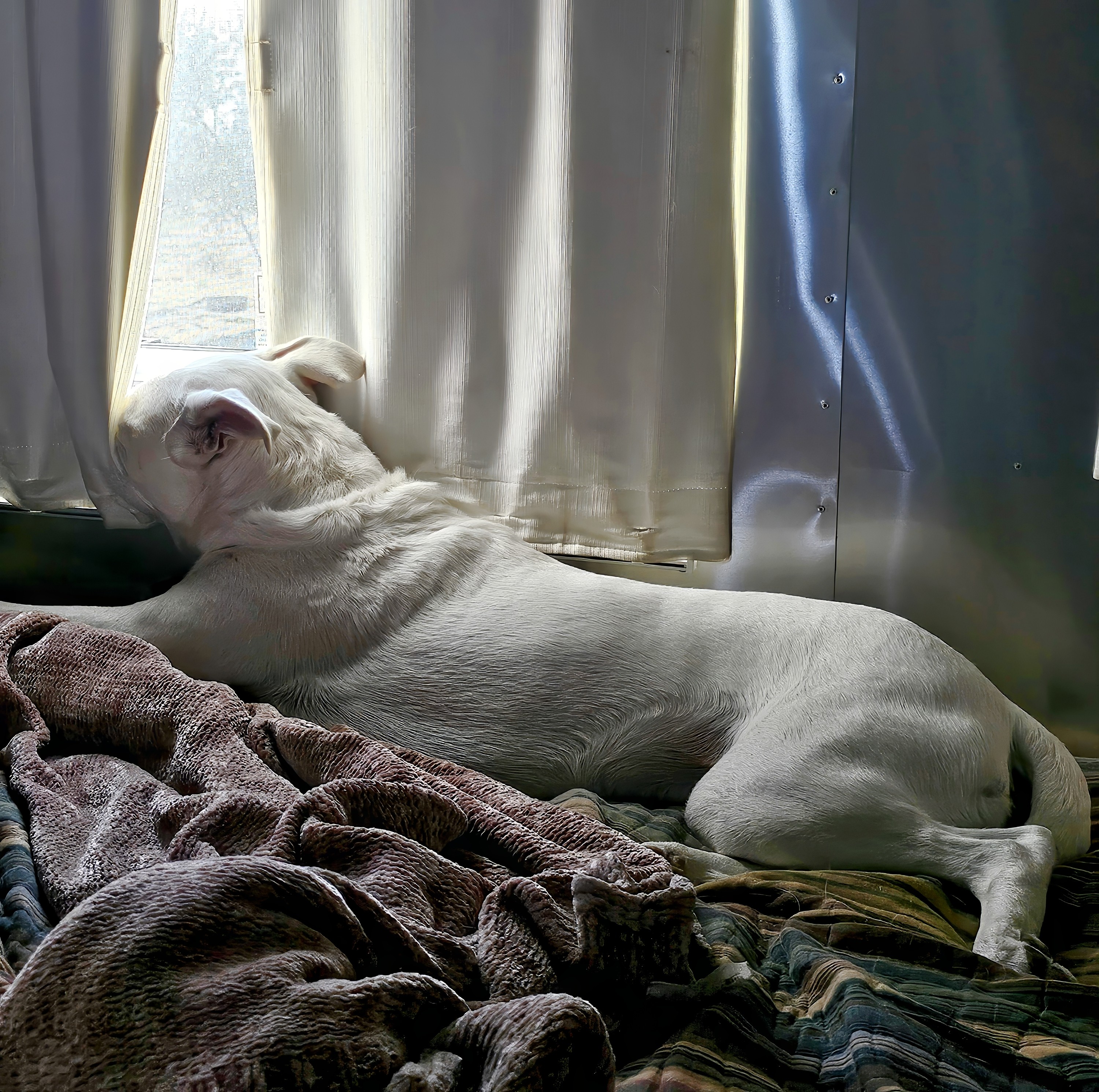 The campground was never really crowded, but we did have neighbors with small kids for a few days. Murphy would watch them play from the windows of the camper. Once, he fell asleep watching them and gave me one of my favorite pictures of him.