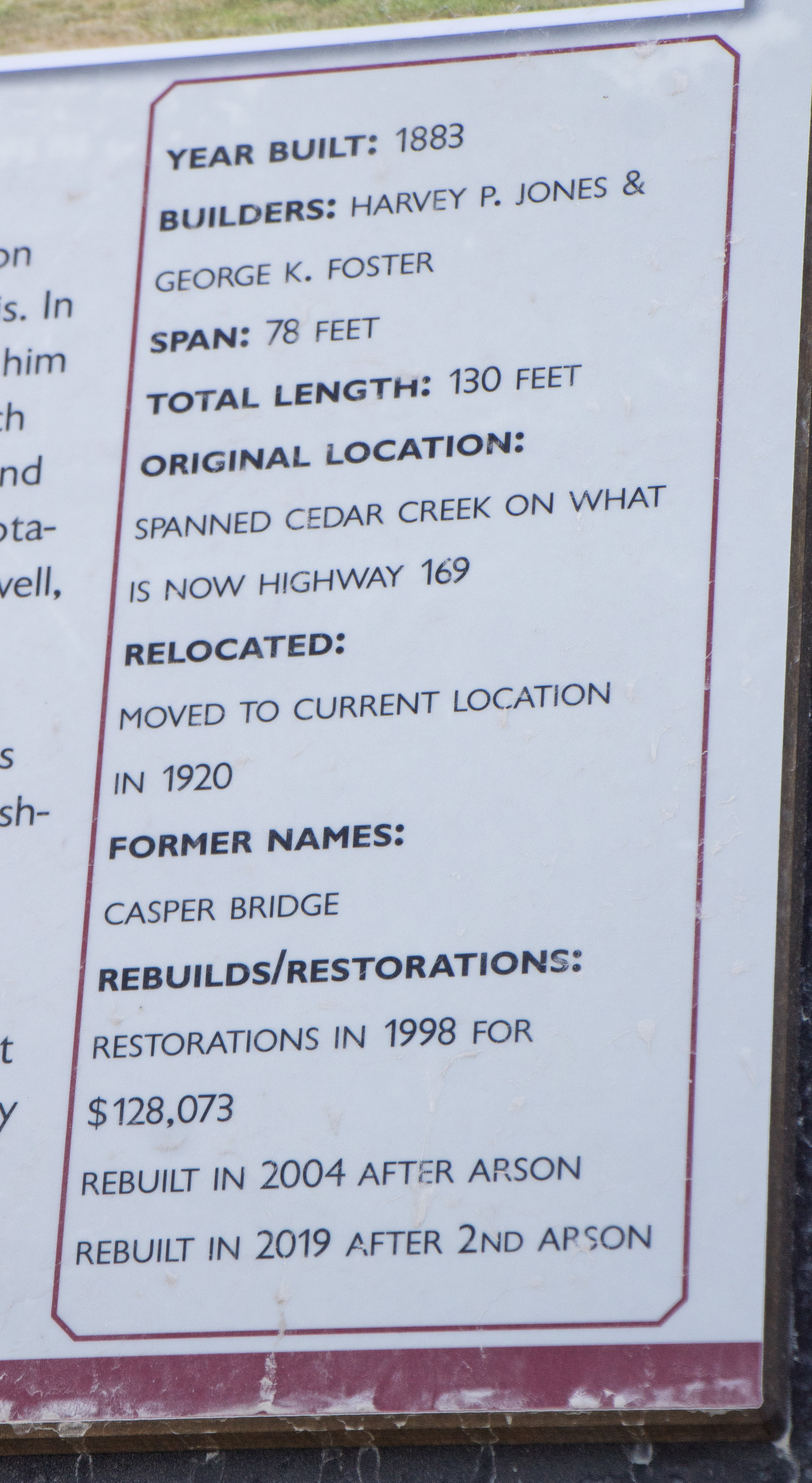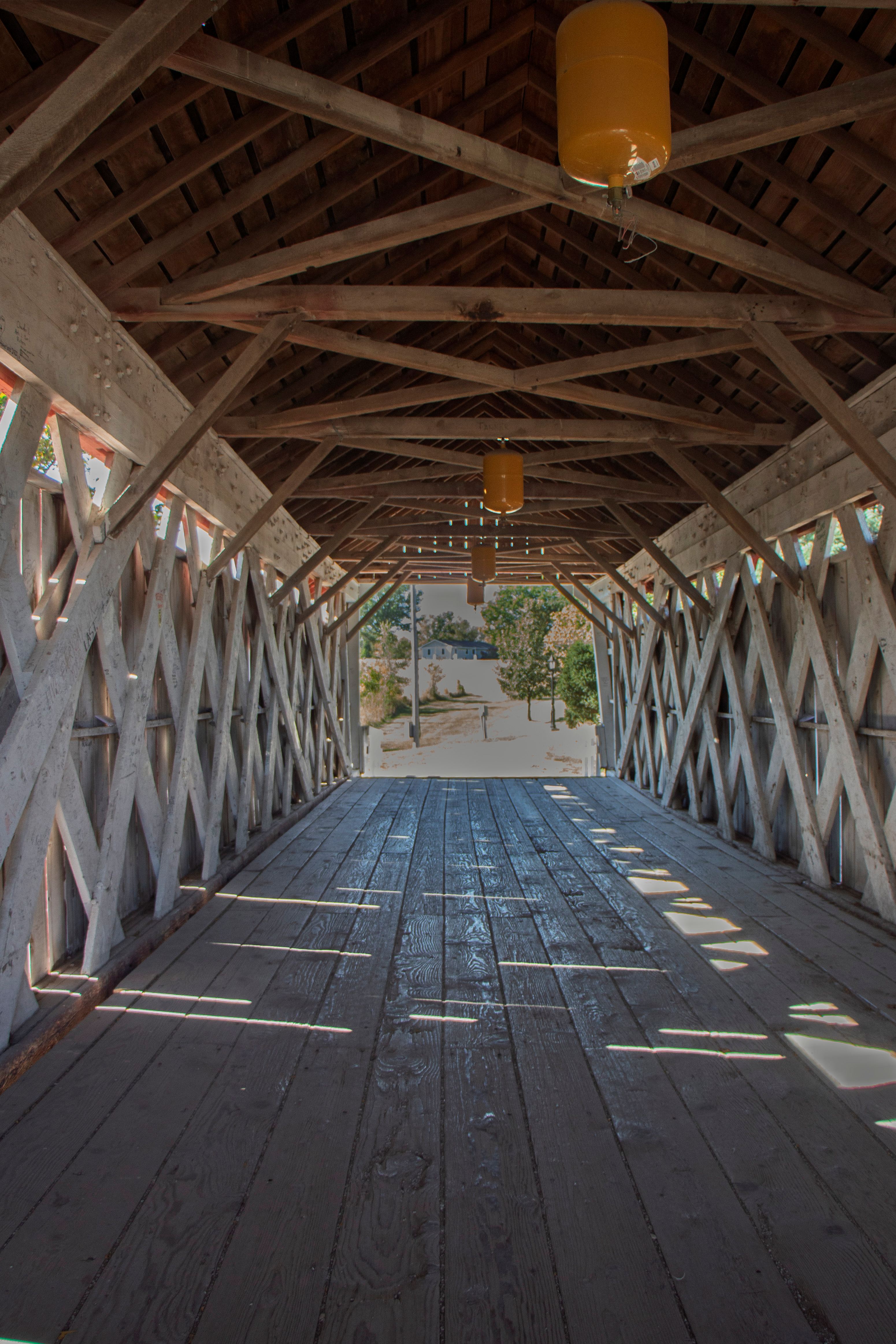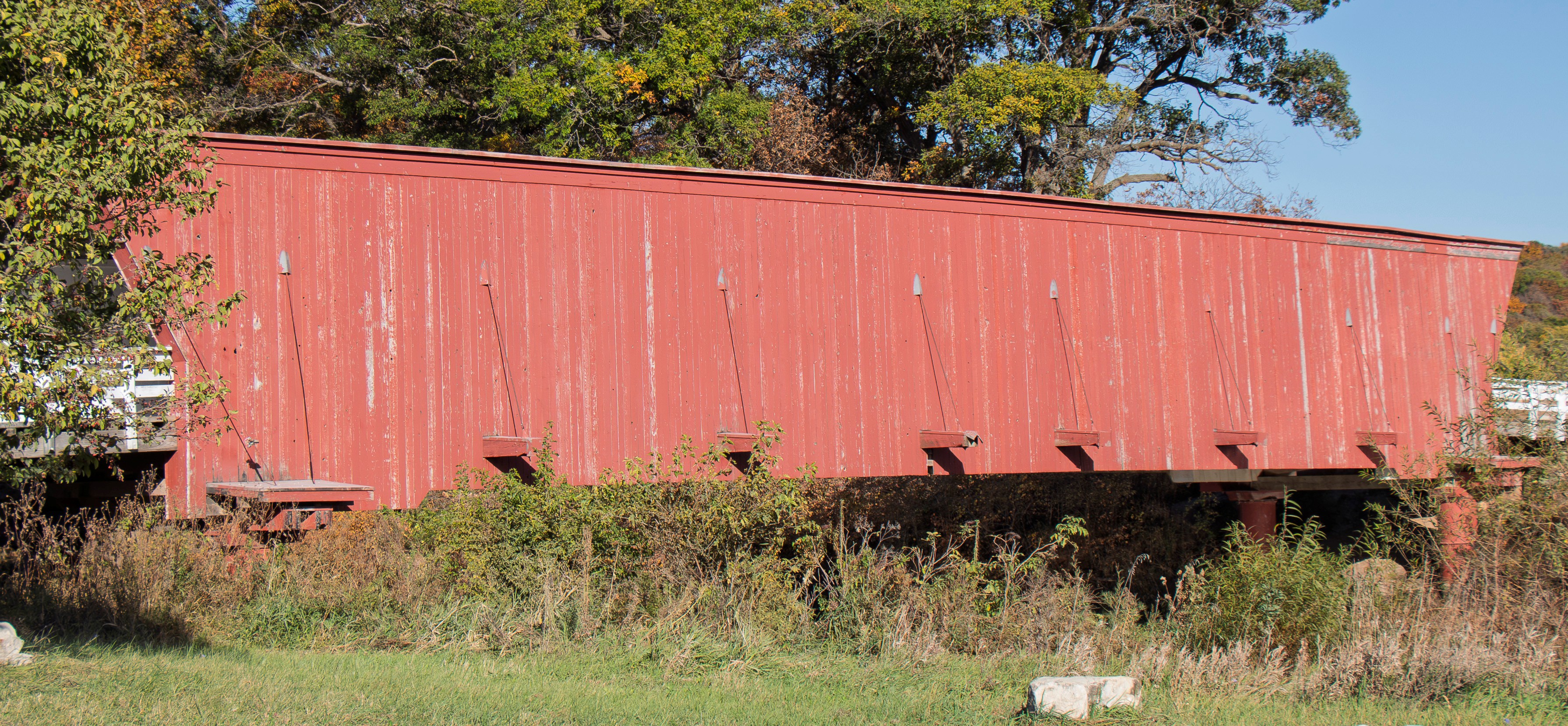 Our first stop was the Imes Bridge in St. Charles, Iowa. We were confused by the yellow canisters hanging inside of the bridge until we figured out that they were sprinkler systems in case of fire.