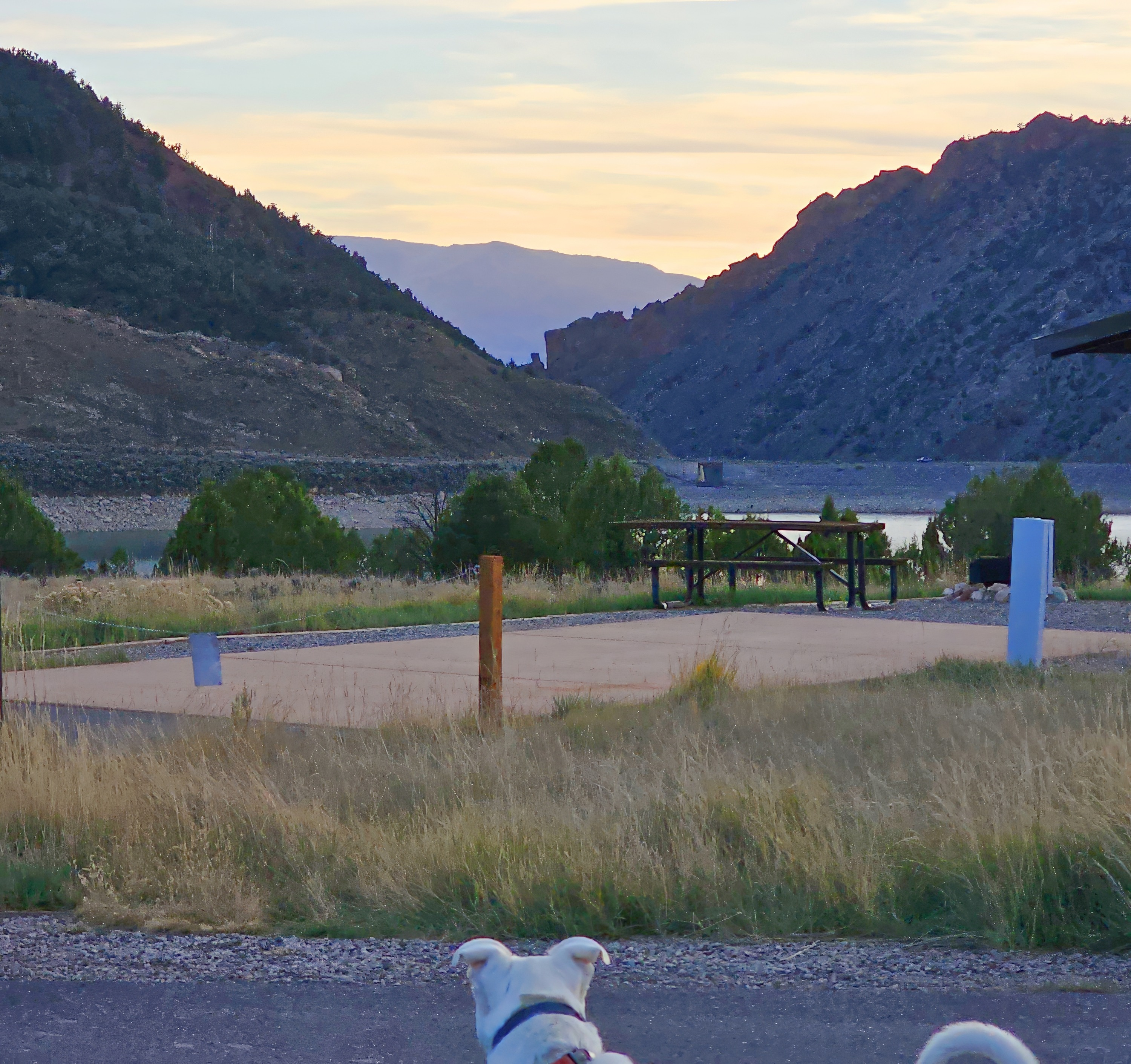 The campground sits above South Fork Reservoir, a man-made reservoir for water-based recreation. Boating, fishing, and swimming are encouraged. Murphy and I spent quite a lot of time down at the water’s edge. He swam every day, and I took too many pictures of the beautiful landscape.