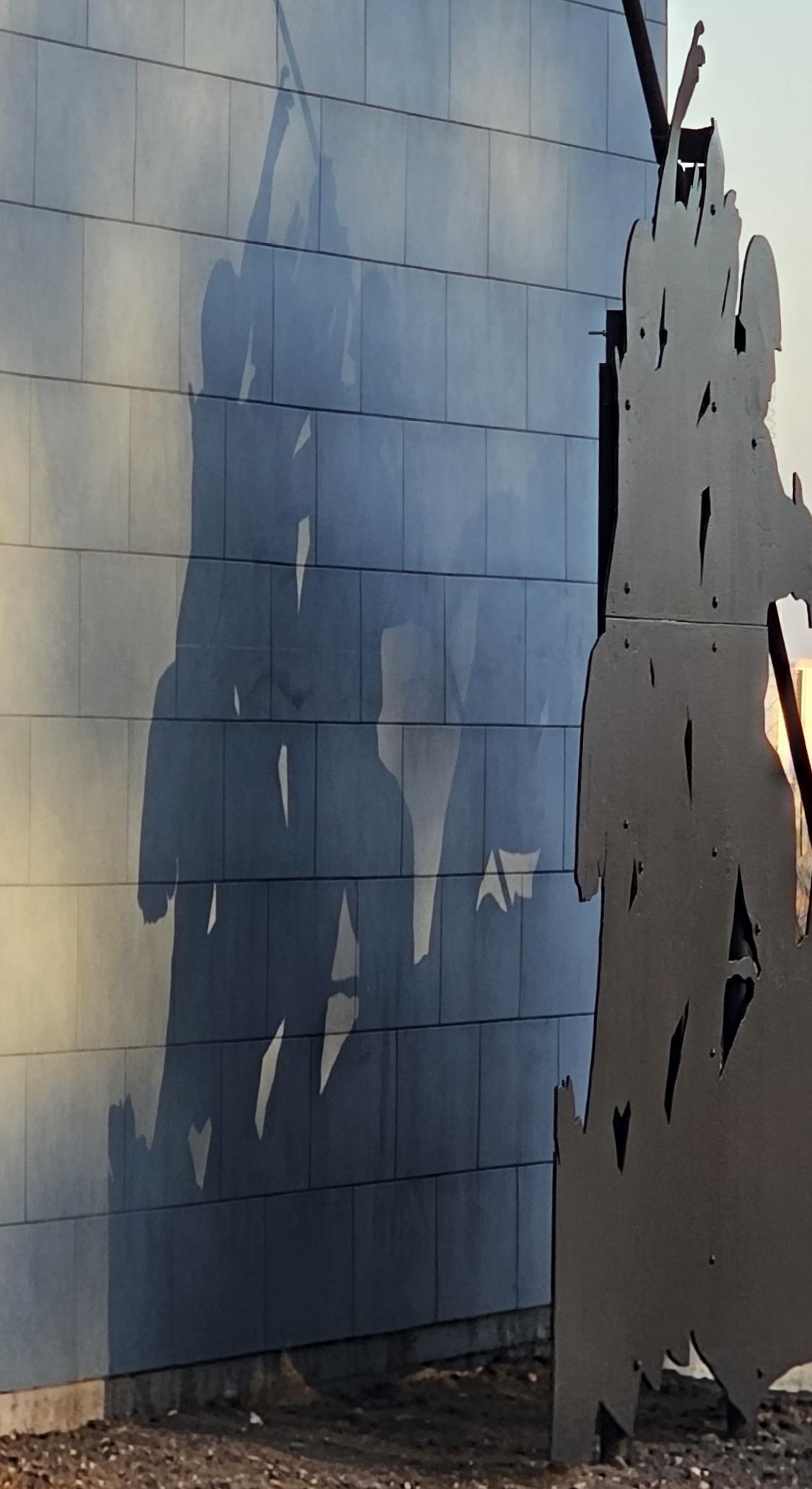 The shadows on the wall of the sculpture seemed to bring the soldiers to life for me. I am not sure if that was the intention, but it was very powerful to look at.