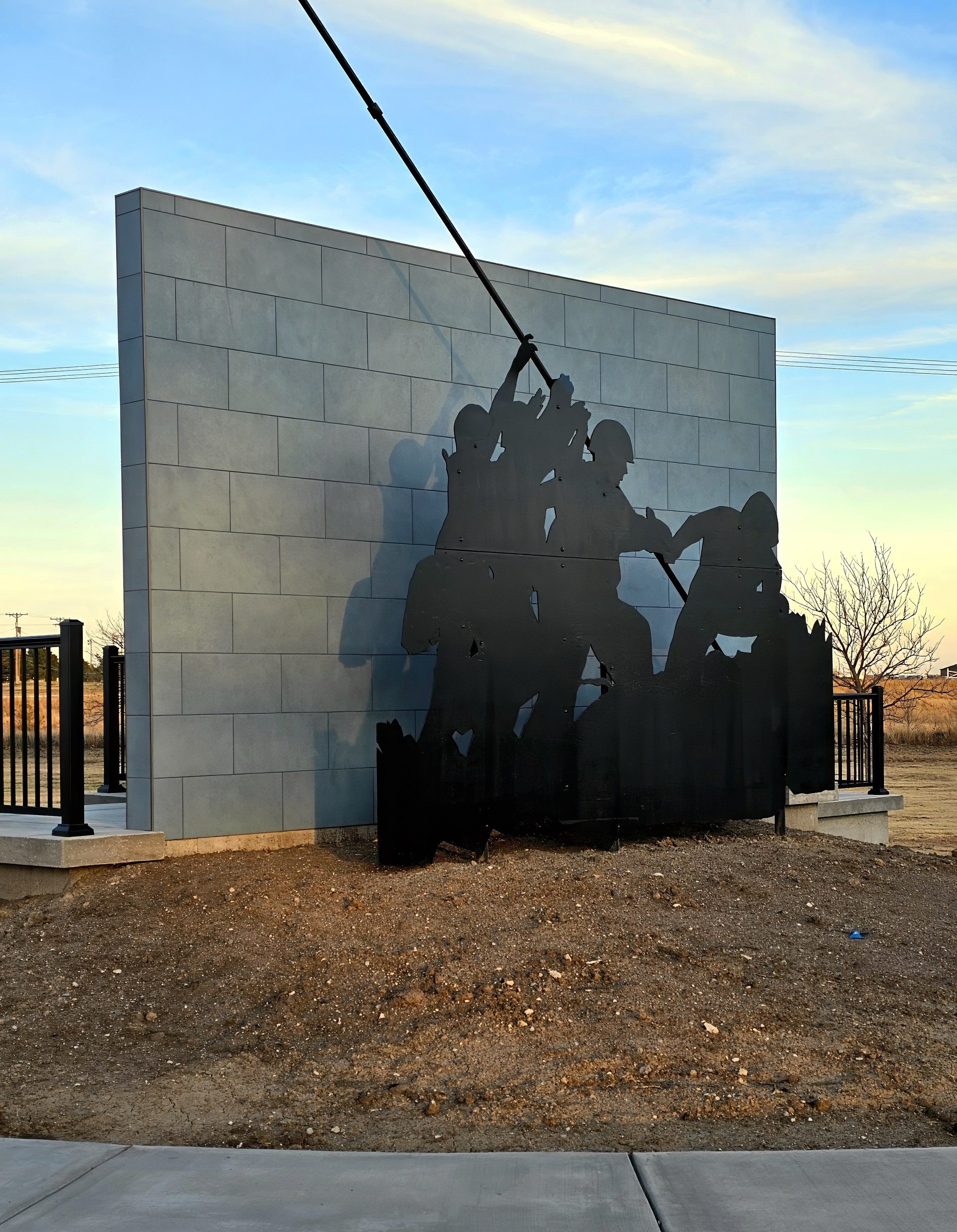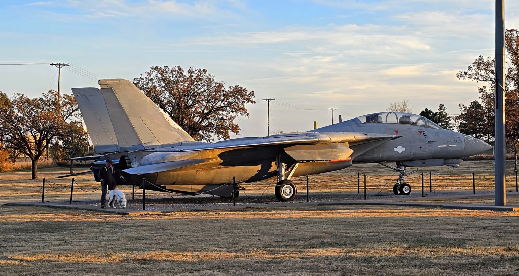 Our next stop was in Wakeenee, Kansas, at a Harvest Host. This host was the Prairie Rose Inn, which also had a bar and restaurant. Just across the street was a dog park and a World War II Iwo Jima memorial with an old military jet on display. We parked our home, took Murphy to the dog park, and checked out the memorial and the jet before Aaron and I went inside to grab some dinner.