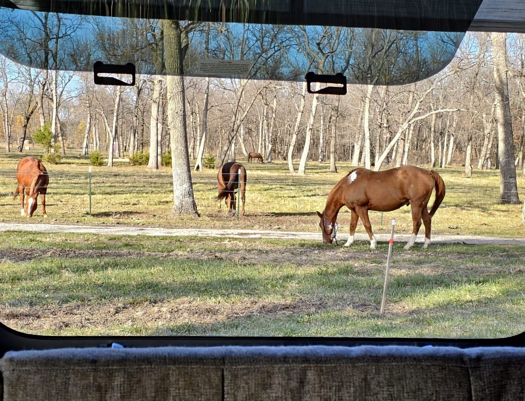 Due to the needs of Aaron’s job, we spent most of the month of November outside of Kansas City. We found a really nice Hip Camp called Lake Georgia Sue to park the rolling house. We were surrounded by horse pastures on one side and a crop field on the other. There was plenty of space for Murphy to run, horses to admire, and beautiful sunsets.